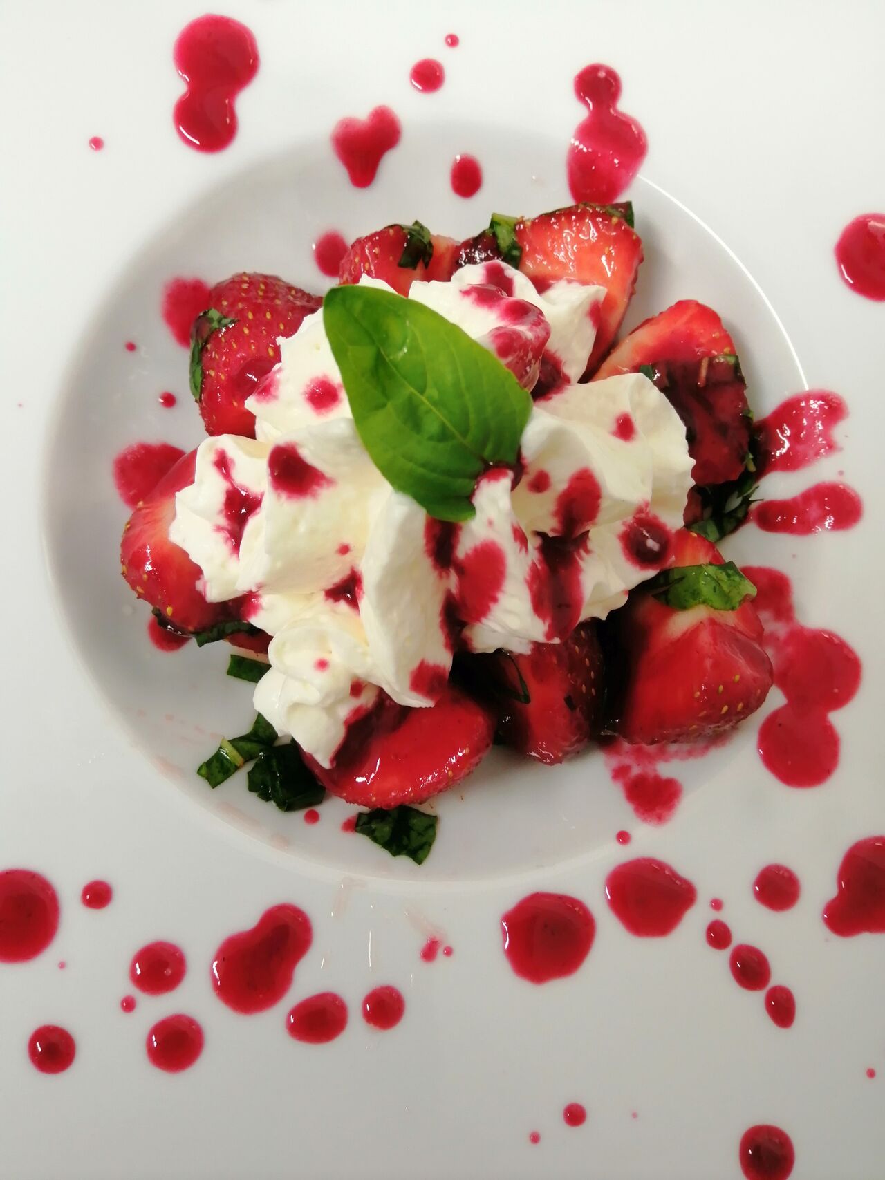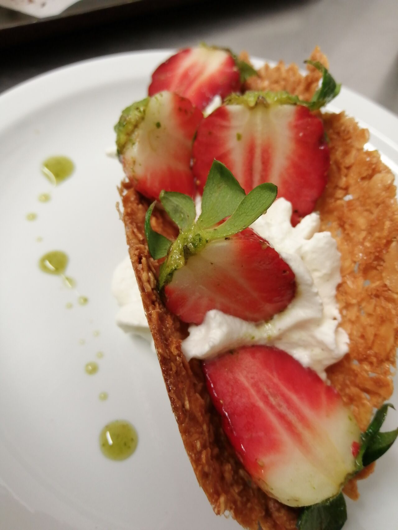 Tuile fraises-basilic et chantilly