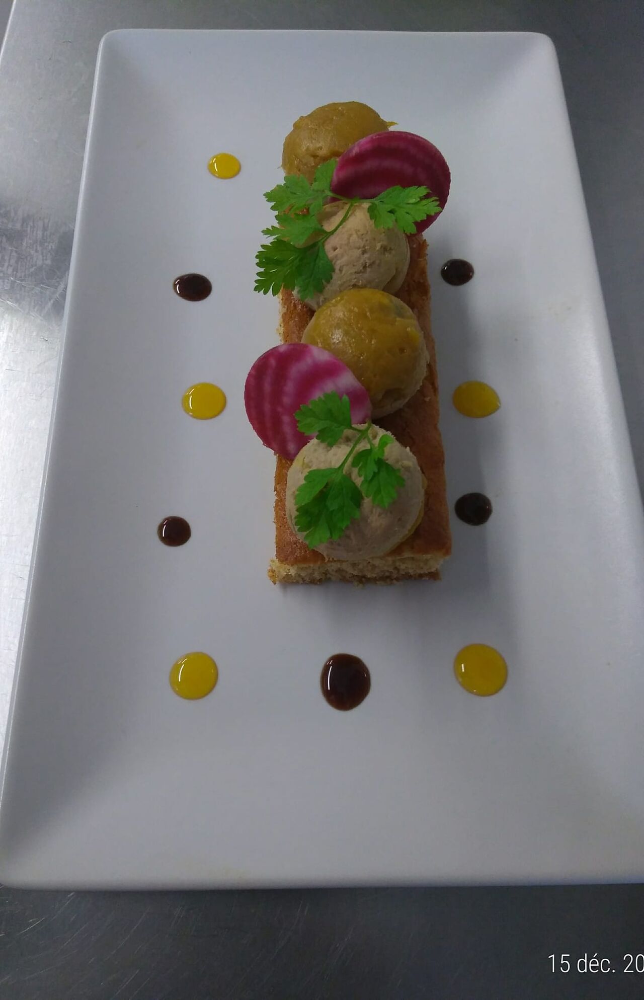 Mystère de foie gras, cœur chutney mangue/gingembre, pain d'épices au poivre de timut