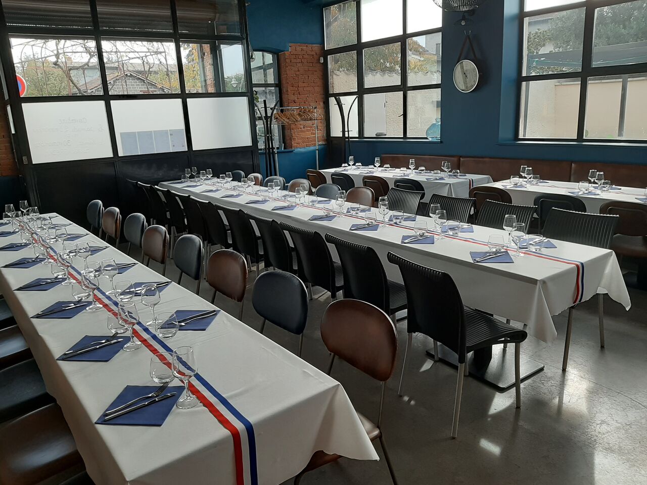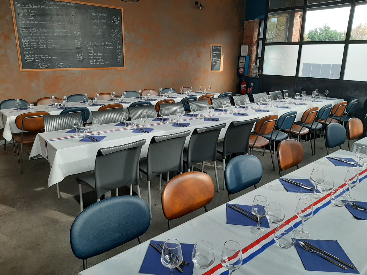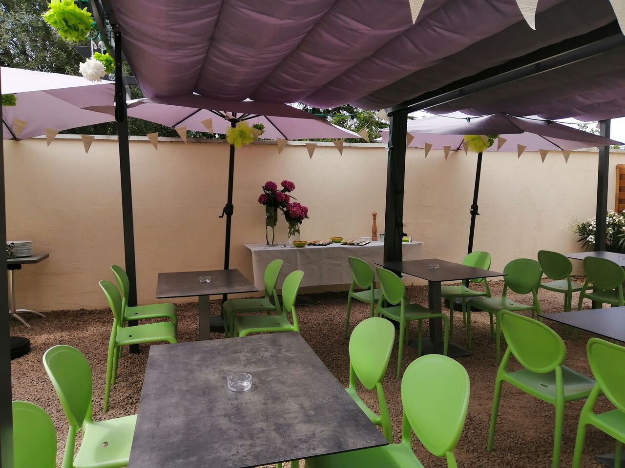 Notre salle climatisée vous accueille pour vos déjeuners, dîners, événements familiaux...