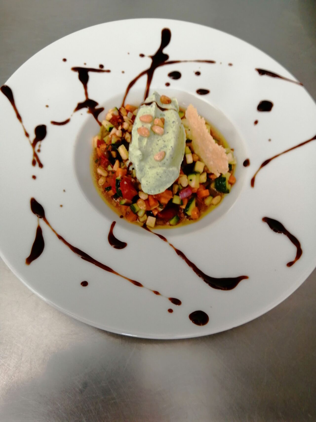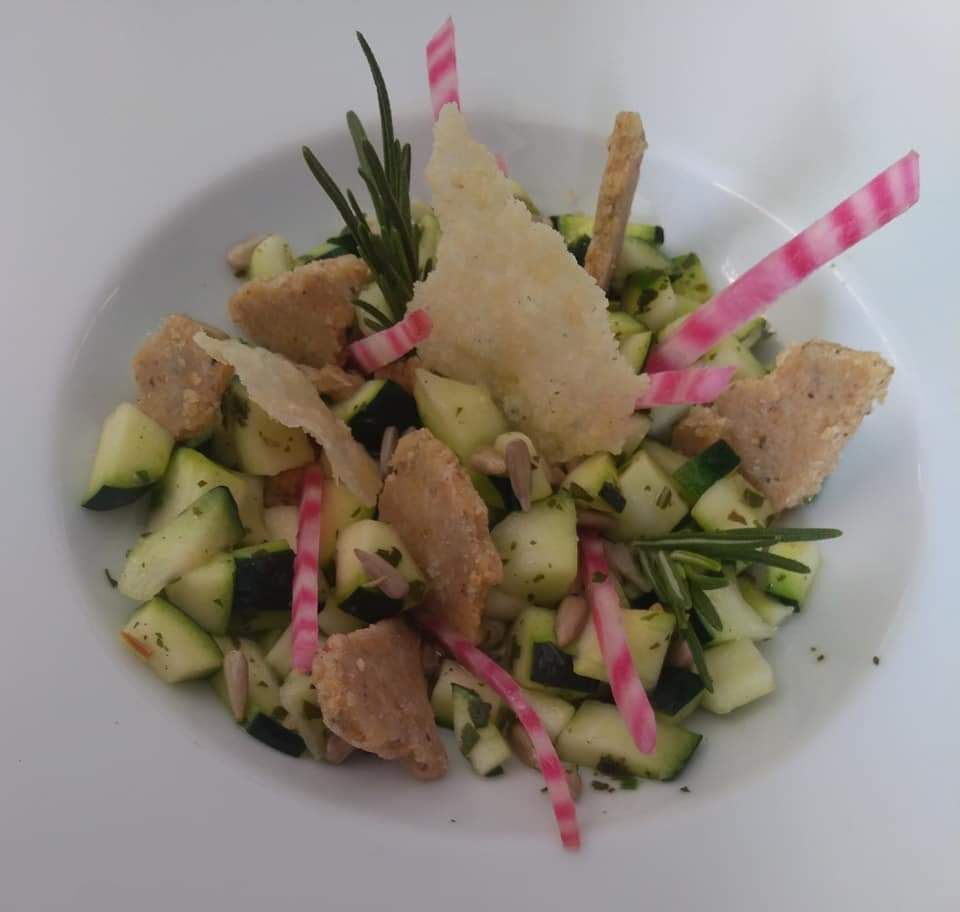 Courgettes croquantes au pesto d'ail des ours, sablé aux herbes