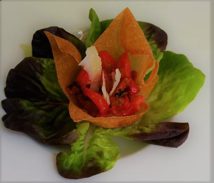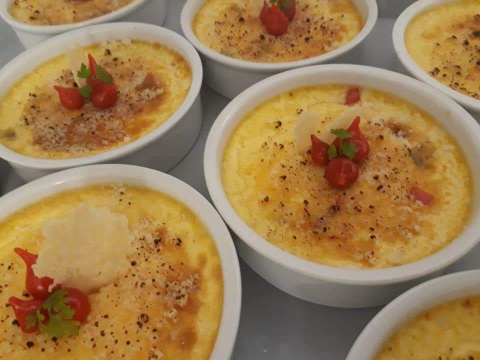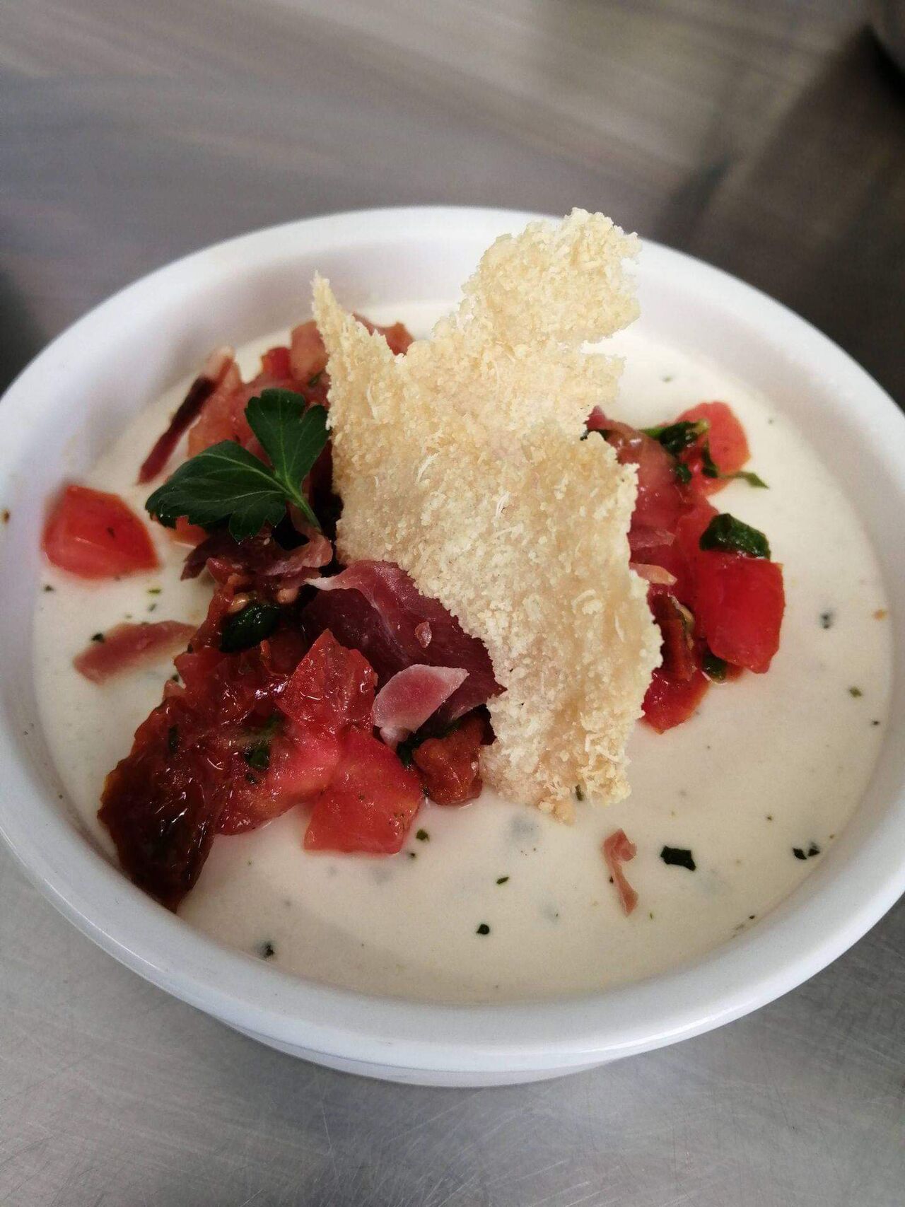 Panna-cotta au parmesan et son petit tartare tomates/jambon cru