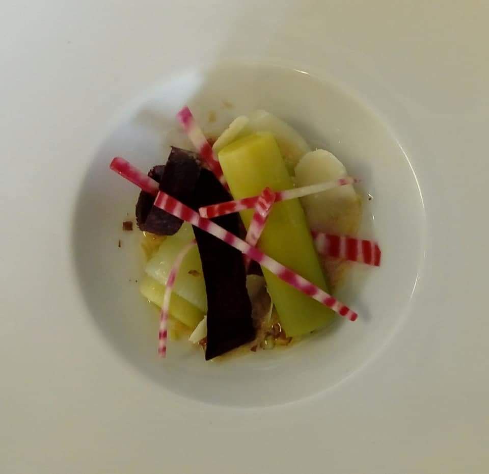 Poireaux-Mimosa, vinaigrette aux noisettes torréfiées