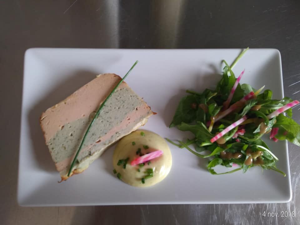 Terrine saumon/lieu, mayonnaise verte